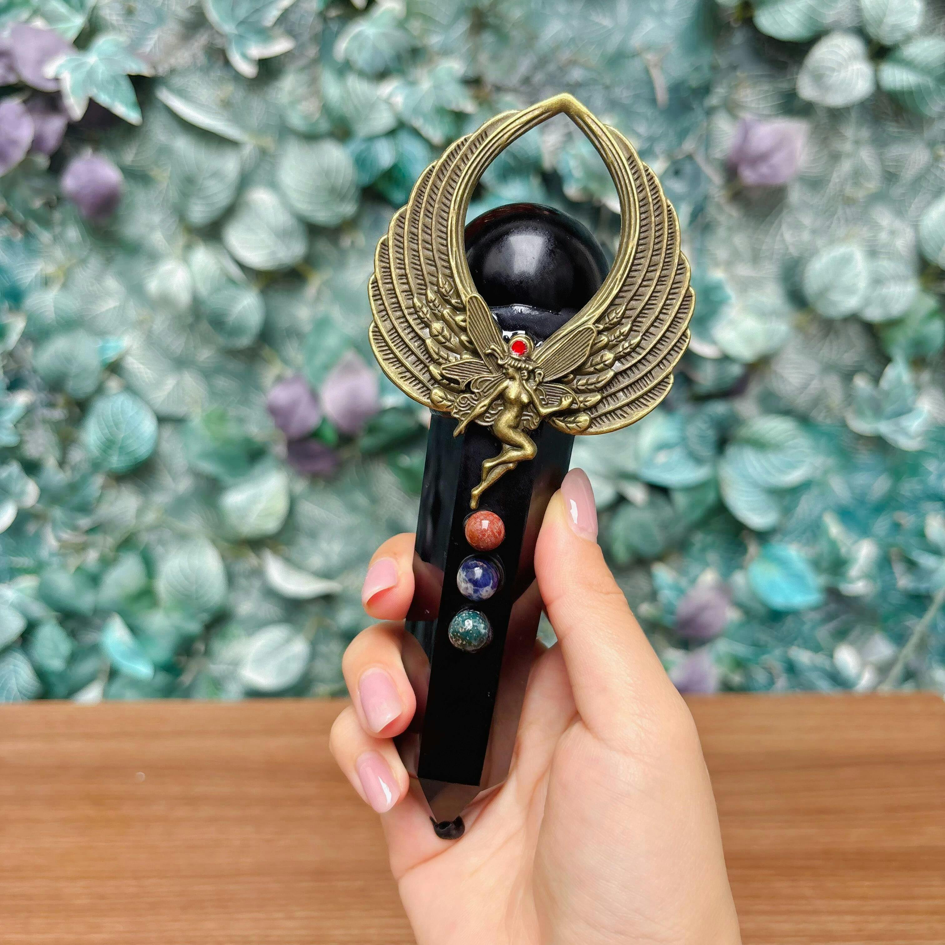 What if you could anchor your energy and shield yourself from negativity? The Obsidian Protection Wand embodies deep grounding and psychic defense. Its glossy black crystal absorbs dense energy, while chakra gemstones restore inner balance and courage.